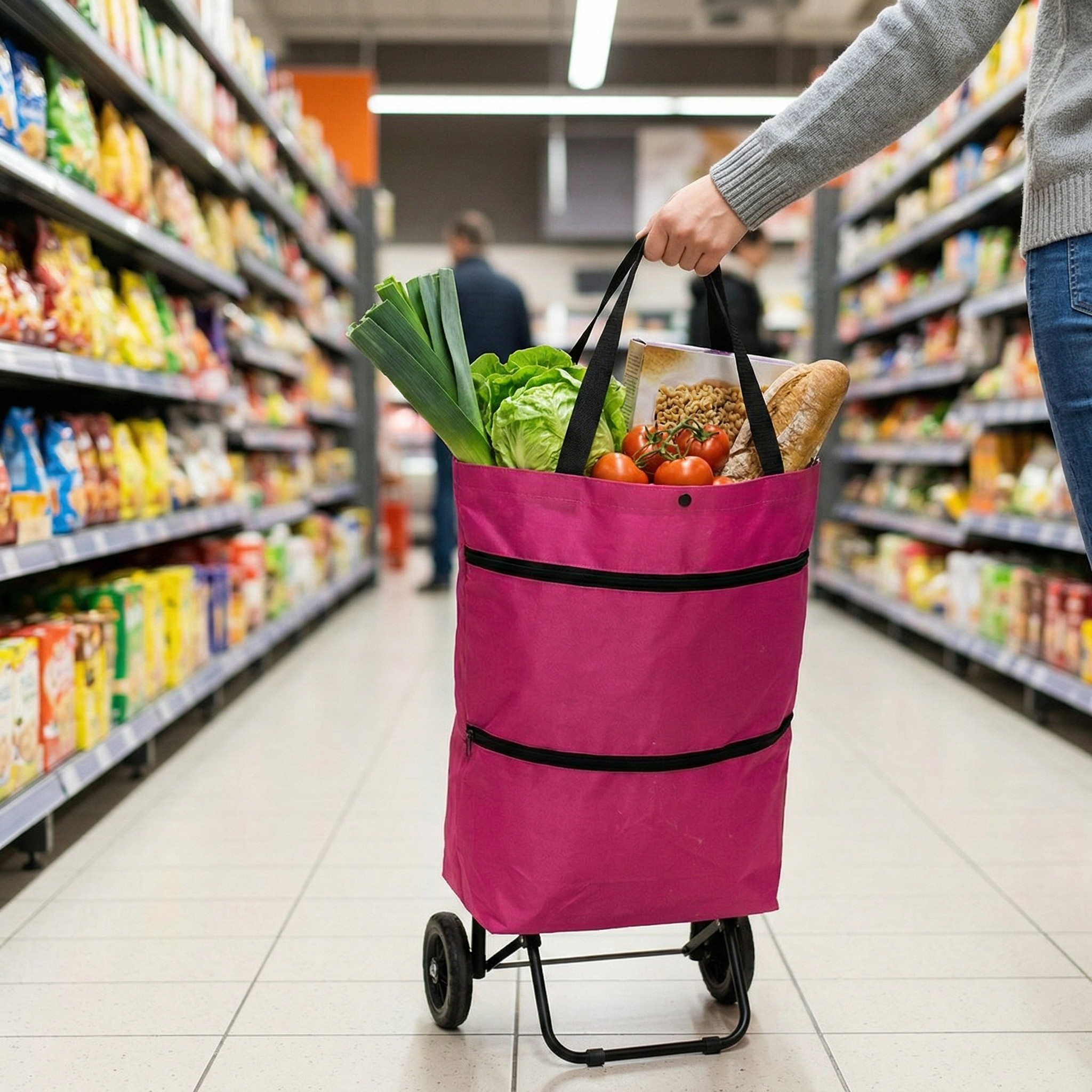 Traction plus légère + poignée confortable pour transporter tes courses sans te casser.