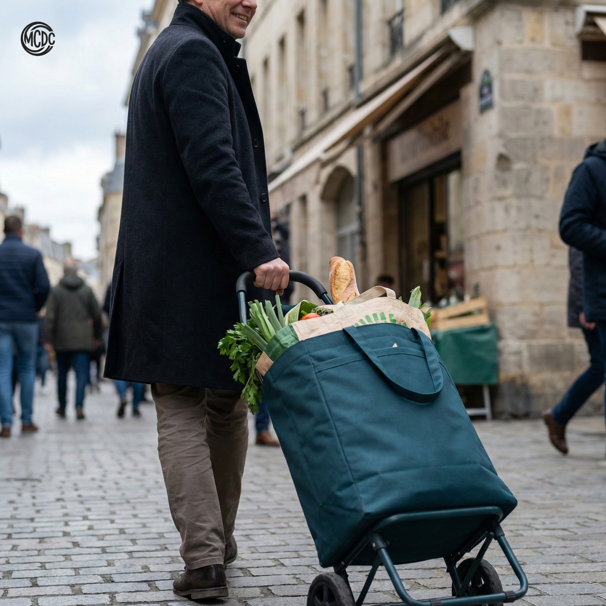 Pensé pour un usage quotidien, il accompagne naturellement les trajets courants : marché, supermarché, commerces de proximité.